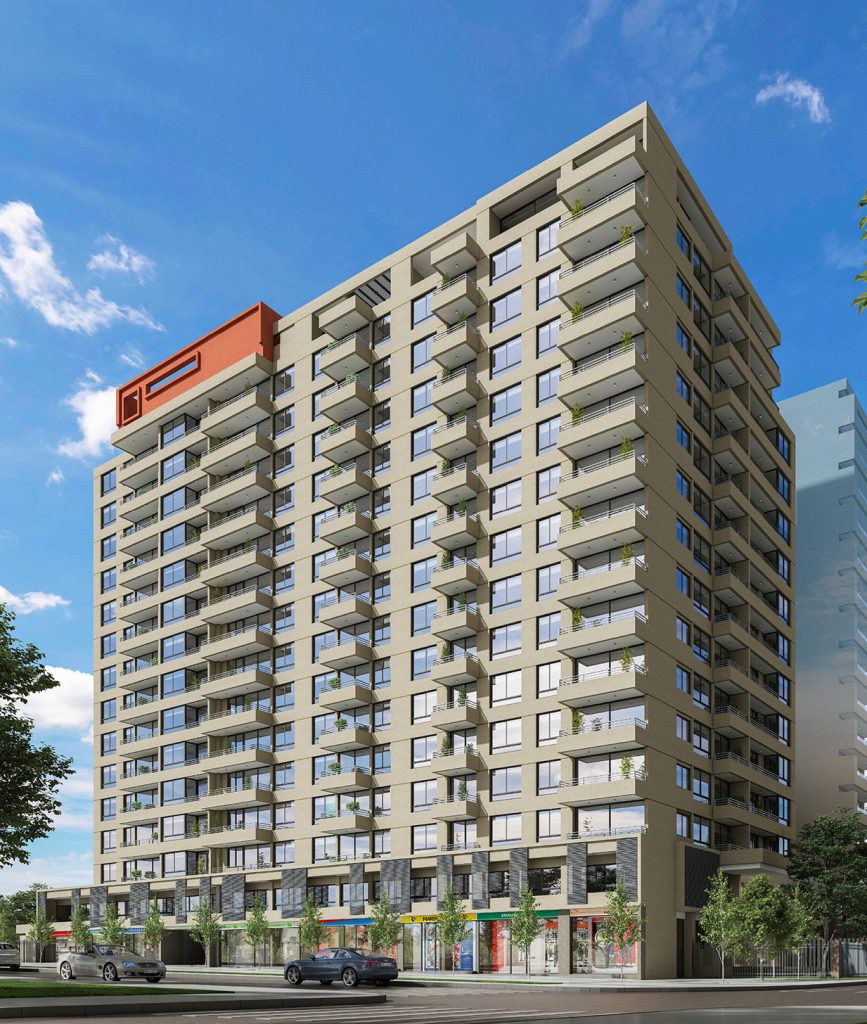 • Edificio de 16 pisos con 182 departamentos: 1 y 2 dormitorios.